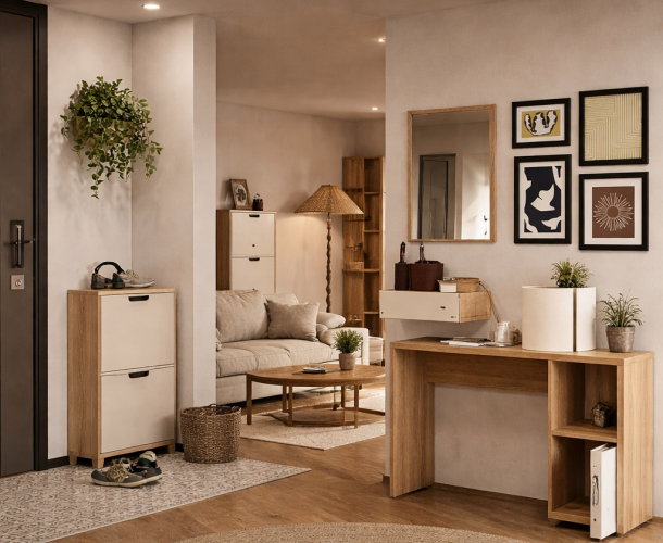Estilo moderno y cálido, con líneas limpias, tonos neutros y acabados en madera que aportan equilibrio, aportan luminosidad y comodidad visual.